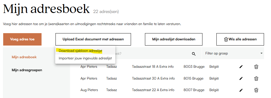 - Nu al je adressen beschikbaar zijn in je adresboek kan je ze gebruiken bij je de bestelling van je kaarten of wenskaarten